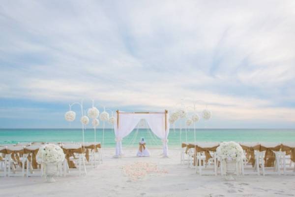 Ceremony on the beach, lovely reception venue, fully furnished condos, all in one location.